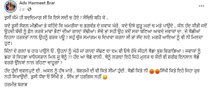 ਹਰਮੀਤ ਕੌਰ ਬਰਾੜ ਨੇ ਕਿਹਾ ਹੈ ਕਿ ਅੰਮ੍ਰਿਤਪਾਲ ਸਿੰਘ ਖਿਲਾਫ ਕਾਰਵਾਈ ਤੋਂ ਬਾਅਦ ਸੀਰਤ ਕੌਰ ਨੂੰ ਖਾਲਿਸਤਾਨ ਪੱਖੀਆਂ ਨੇ ਧਮਕੀ ਦਿੱਤੀ ਹੈ। ਸੀਐਮ ਭਗਵੰਤ ਮਾਨ ਦੀ ਬੇਟੀ ਸੀਰਤ ਕੌਰ ਮਾਨ ਨੂੰ ਫੋਨ ‘ਤੇ ਧਮਕੀਆਂ ਦਿੱਤੀਆਂ ਤੇ ਗਾਲੀ ਗਲੋਚ ਕੀਤਾ ਗਿਆ।