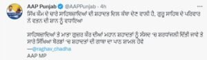 ਰਾਘਵ ਚੱਢਾ ਦਾ ਵੱਡਾ ਕਦਮ, ਸਕੂਲਾਂ ‘ਚ ਸਾਹਿਬਜ਼ਾਦਿਆਂ ਦੀਆਂ ‘ਕੁਰਬਾਨੀਆਂ’ ਪੜ੍ਹਾਏ ਜਾਣ ਦੀ ਰੱਖੀ ਮੰਗ