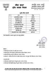 ਕੋਰੀ ਕਮੇਟੀ ਤੋਂ ਇਲਾਵਾ ਭਾਜਪਾ ਵਲੋਂ 9 ਮੈਂਬਰੀ ਸੂਬਾ ਵਿੱਤ ਕਮੇਟੀ ਦਾ ਵੀ ਗਠਨ ਕੀਤਾ ਗਿਆ ਹੈ। ਇਸ ਕਮੇਟੀ ਵਿਚ ਮਨਰੋਜਨ ਕਾਲੀਆ, ਸੁਨੀਲ ਜਾਖੜ, ਤਿਕਸ਼ਣ ਸੂਦ, ਅਰਵਿੰਦ ਖੰਨਾ, ਸਰਬਜੀਤ ਸਿੰਘ ਮੱਕੜ, ਸਰੂਪ ਚੰਦ ਸਿੰਗਲਾ, ਪ੍ਰਵੀਨ ਬਾਂਸਲ, ਸੰਜੀਵ ਖੰਨਾ, ਗੁਰਦੇਵ ਸ਼ਰਮਾ ਨੂੰ ਸ਼ਾਮਲ ਕੀਤਾ ਗਿਆ ਹੈ।