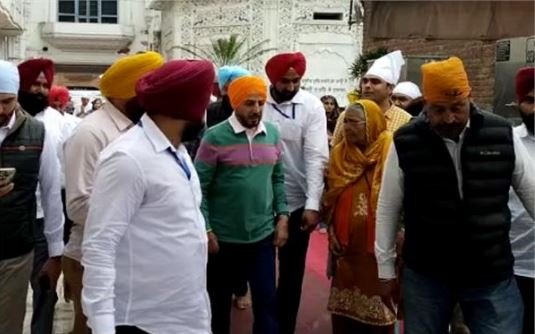 ਪੰਜਾਬੀ ਸੰਗੀਤ ਜਗਤ ਦਾ ਥਮ੍ਹ ਮੰਨੇ ਜਾਂਦੇ ਮਸ਼ਹੂਰ ਪੰਜਾਬੀ ਗਾਇਕ ਗੁਰਦਾਸ ਮਾਨ ਅੱਜ ਗੁਰੂ ਕੀ ਨਗਰੀ ਅੰਮ੍ਰਿਤਸਰ ਵਿਖੇ ਪਹੁੰਚੇ। ਇਸ ਦੌਰਾਨ ਉਹ ਸ੍ਰੀ ਦਰਬਾਰ ਸਾਹਿਬ ਵਿਖੇ ਨਤਮਸਤਕ ਹੋਏ। ਇਸ ਮੌਕੇ ਗੁਰਦਾਸ ਮਾਨ ਨੇ ਸਿਰ ‘ਤੇ ਕੇਸਰੀ ਰੰਗ ਦੀ ਦਸਤਾਰ ਸਜਾਈ ਸੀ। ਉਨ੍ਹਾਂ ਦੇ ਇਸ ਲੁੱਕ ਨੇ ਹਰ ਕਿਸੇ ਨੂੰ ਆਪਣੇ ਵੱਲ ਆਕਰਸ਼ਿਤ ਕੀਤਾ। ਗੁਰਦਾਸ ਮਾਨ ਨੇ ਸ੍ਰੀ ਦਰਬਾਰ ਸਾਹਿਬ ਵਿਖੇ ਮੱਥਾ ਟੇਕ ਕੇ ਸਰਬਤ ਦੇ ਭਾਲੇ ਦੀ ਅਰਦਾਸ ਕੀਤੀ। ਉਨ੍ਹਾਂ ਨੇ ਆਪਣੇ ਸਾਥੀਆਂ ਨਾਲ ਗੁਰੂ ਬਾਣੀ ਦਾ ਆਨੰਦ ਮਾਣਿਆ।