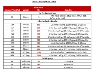 ਭਾਰਤੀ ਏਅਰਟੈੱਲ ਦੇ ਚੇਅਰਮੈਨ ਸੁਨੀਲ ਭਾਰਤੀ ਮਿੱਤਲ ਨੇ ਪਿਛਲੇ ਅਗਸਤ ‘ਚ ਹੀ ਆਪਣੇ ਟੈਰਿਫ ਪਲਾਨ ਦੀਆਂ ਦਰਾਂ ਵਧਾਉਣ ਦਾ ਸੰਕੇਤ ਦਿੱਤਾ ਸੀ। ਫਿਰ ਉਸਨੇ ਕਿਹਾ ਸੀ, “ਇਕਮਾਤਰ ਰਸਤਾ ਹੈ ਟੈਲੀਕਾਮ ਉਦਯੋਗ ਲਈ ਟੈਰਿਫ ਵਿੱਚ ਵਾਧਾ… ਅਸੀਂ ਆਪਣਾ ਕੰਮ ਸੀਮਤ ਤਰੀਕੇ ਨਾਲ ਕੀਤਾ ਹੈ, ਹੁਣ ਸਬਰ ਦਾ ਅੰਤ ਹੋ ਗਿਆ ਹੈ। ਅਸੀਂ ਹਰ ਸਮੇਂ (ਦੂਜਿਆਂ ਤੋਂ) ਵੱਖ ਨਹੀਂ ਹੋ ਸਕਦੇ।”